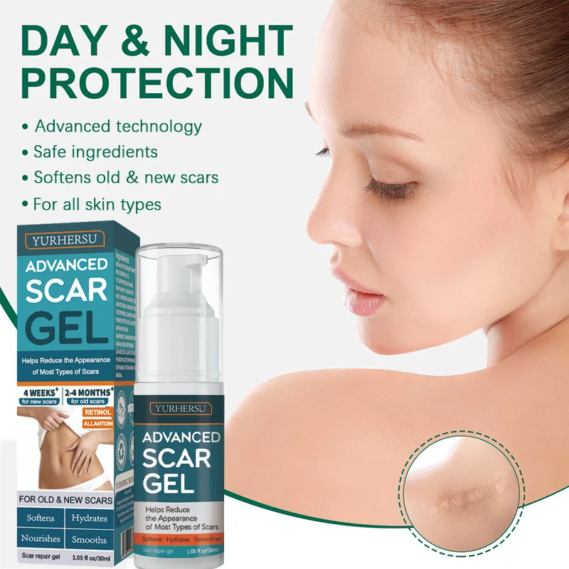 YURHERSU Advanced Scar Gel is a specialized formula designed to help reduce the appearance of most types of scars, including those from surgery, burns, and other skin injuries. This gel works on both old and new scars, promoting skin renewal and improving overall skin texture.