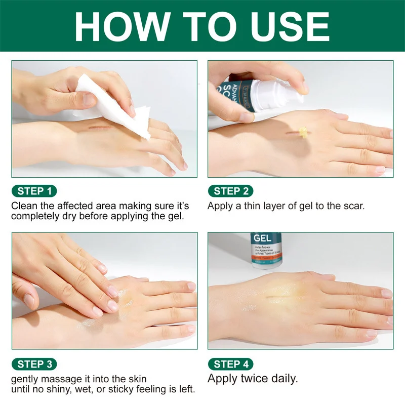4. Step 4: For best results, apply twice daily. Remember, scar repair takes time and consistency is key.