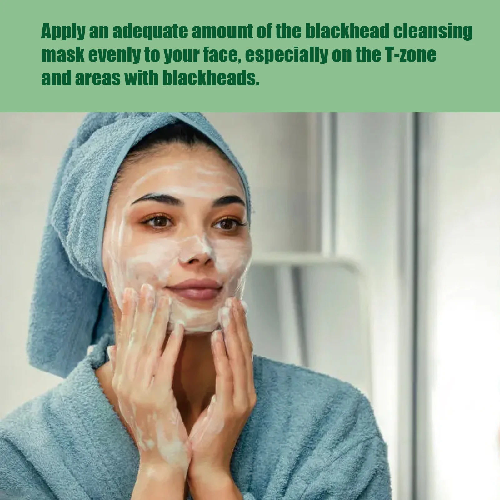 - Apply an adequate amount of the mask evenly to your face, focusing on the T-zone and areas with blackheads.