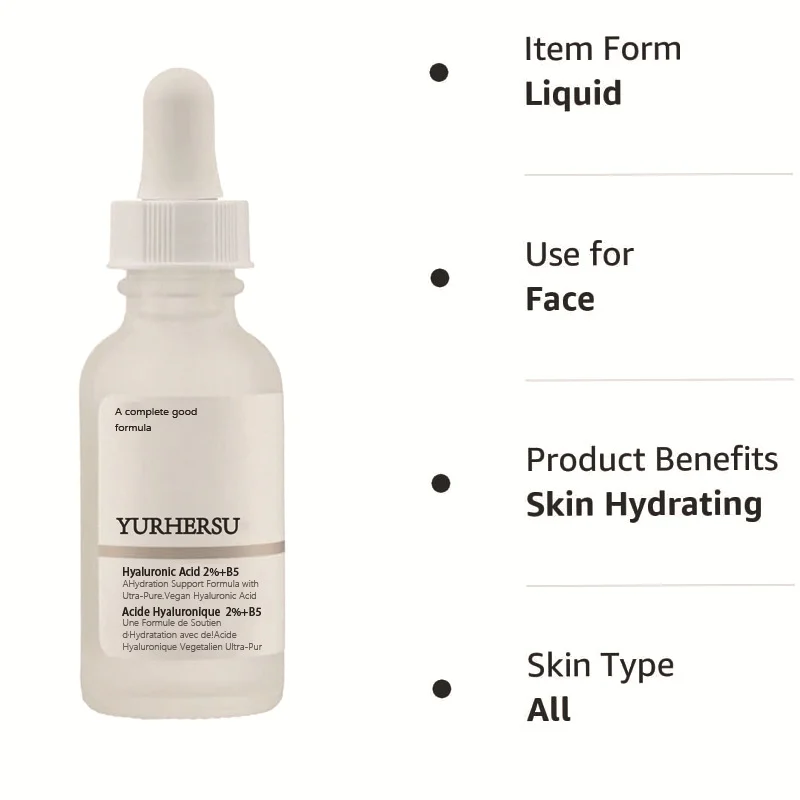 YURHERSU Hyaluronic Acid 2% + B5 Serum for Deep Hydration, Pore Minimizing and Skin Repair