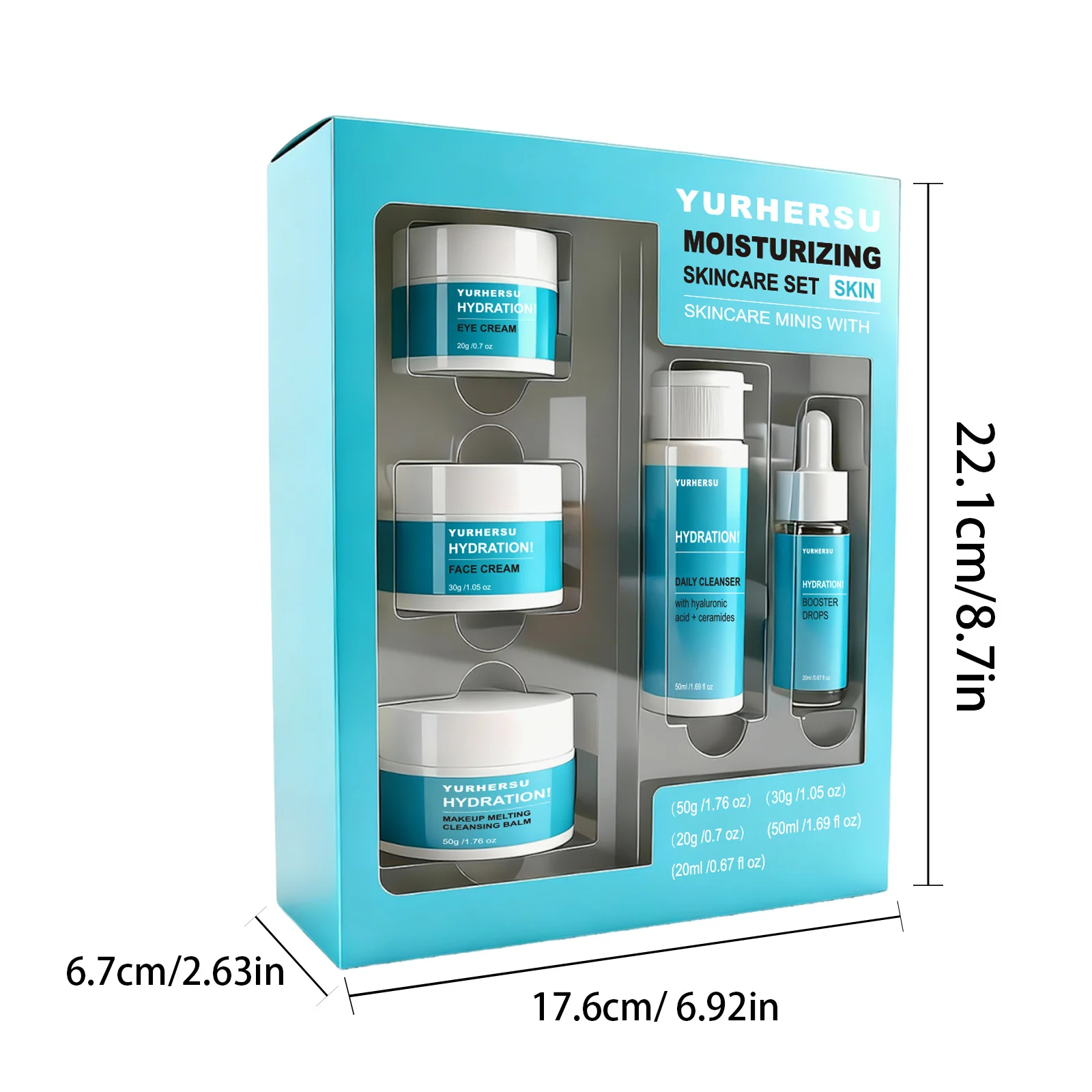 Elevate your daily skincare routine with the YURHERSU Moisturizing Skincare Set. This comprehensive 5-piece kit provides layered hydration and deep nourishment, targeting dryness and fine lines for a healthier, more radiant complexion. Formulated with key ingredients like hyaluronic acid and ceramides, it locks in moisture and strengthens the skin barrier.
