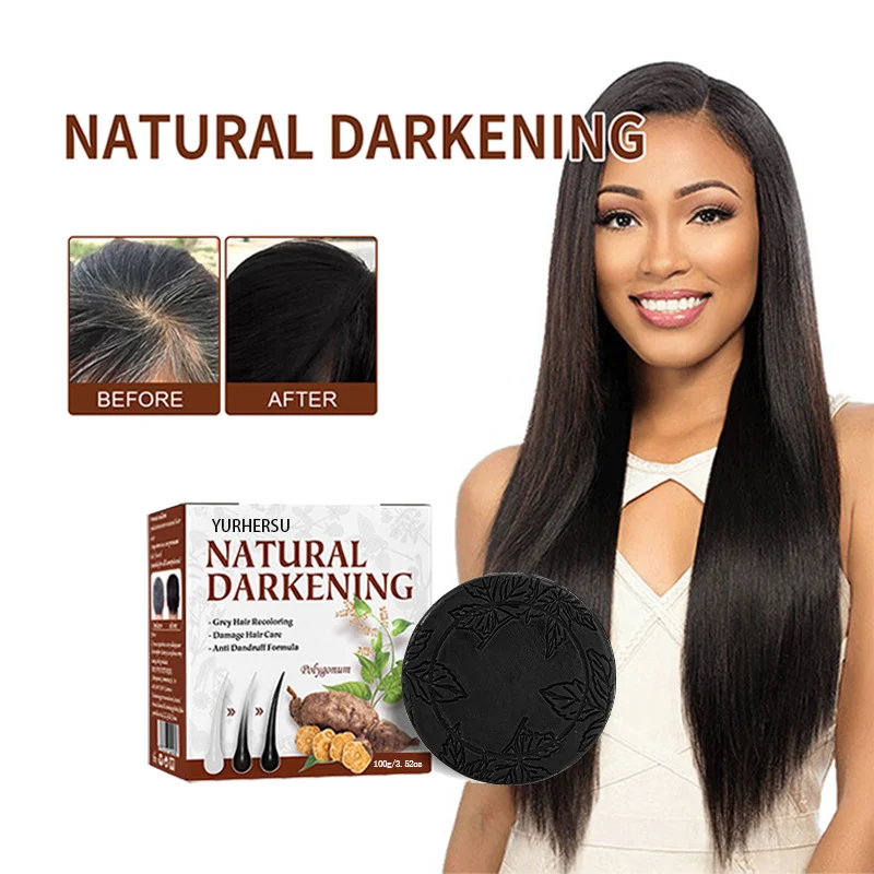 YURHERSU Natural Darkening Shampoo Soap with Polygonum Multiflorum for Gray Hair & Damage Care