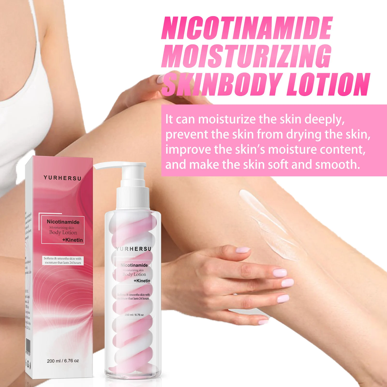 Experience 24-hour lasting moisture and a visibly brighter, smoother complexion with the YURHERSU Nicotinamide Body Lotion. This advanced formula is designed to deeply nourish and repair your skin.
