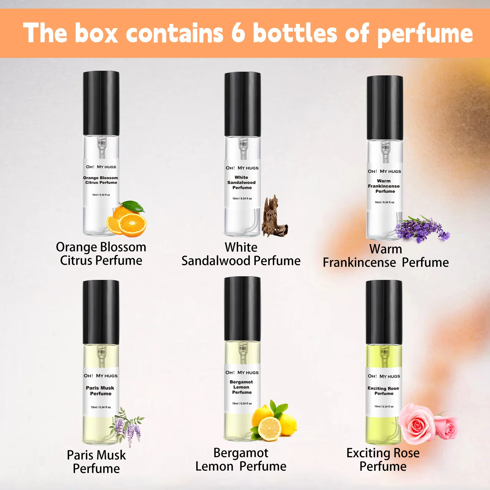 - 6 Unique Fragrances: Includes Orange Blossom, White, Warm Frankincense, Paris Musk, Bergamot Lemon, and Exciting Rose Citrus.