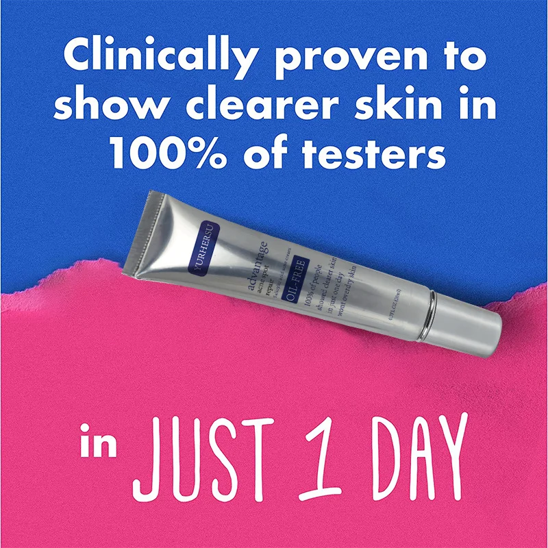 YURHERSU Advantage Acne Spot Treatment is a clinically proven, oil-free cream designed to target and visibly reduce pimples fast. Powered by maximum strength 2% Salicylic Acid and soothing Witch Hazel, it works to clear acne, shrink pores, and combat blackheads and whiteheads without over-drying the skin.