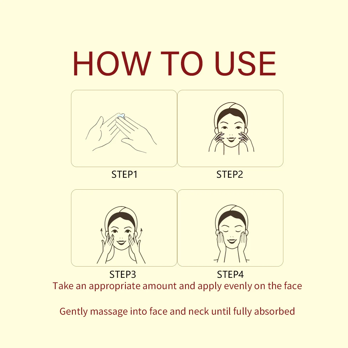 After cleansing your face, take a pea-sized amount of the cream. Gently massage it into your face and neck using upward circular motions until fully absorbed. Use daily in your morning and/or evening skincare routine.