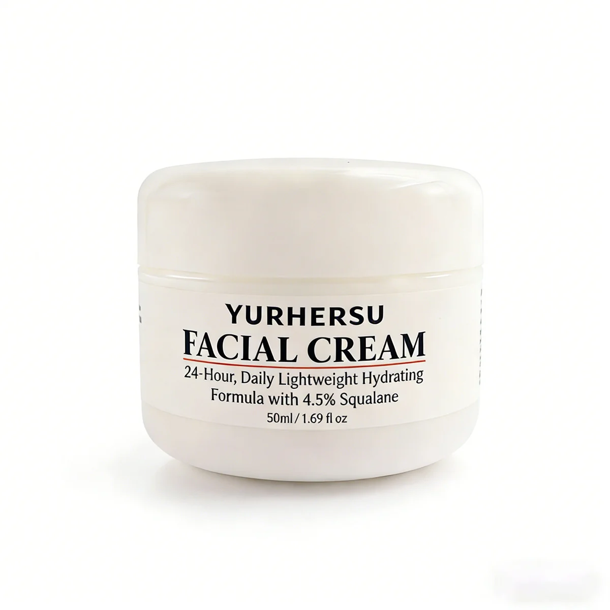 Discover the YURHERSU Squalane Facial Cream, a daily moisturizer formulated with 4.5% Squalane to deeply hydrate, repair the skin barrier, and promote a brighter, more radiant complexion. Its lightweight, non-sticky texture provides 24-hour moisture, making it perfect for rescuing dry skin.